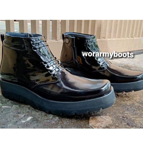 Sepatu Pdh kulit kilap model P2021 sol TEBAL bgt 3-5cm real Pict 100 PERSEN harga Size 38-46 By Wor Army Boots