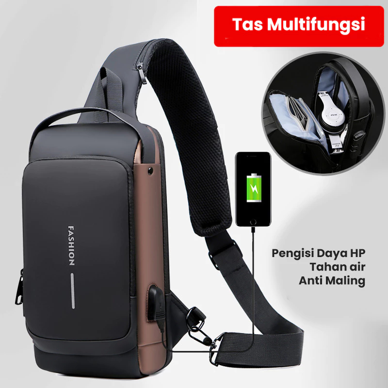 Valshion Tas Selempang Pria Usb Charger Port Waterproof Anti Maling Multifungsi Sport Fashion Premium Import Quality