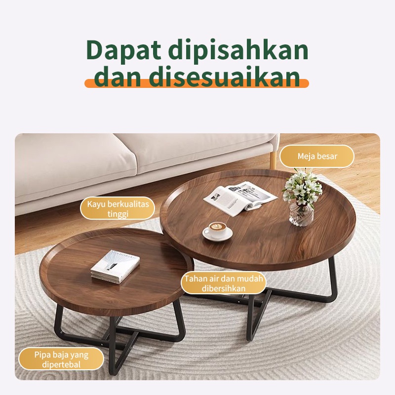 Meja Kopi Multifungsi 2 IN 1 Set Meja Ruang Tamu Meja Sudut & Meja Samping Ruang Tamu Modern