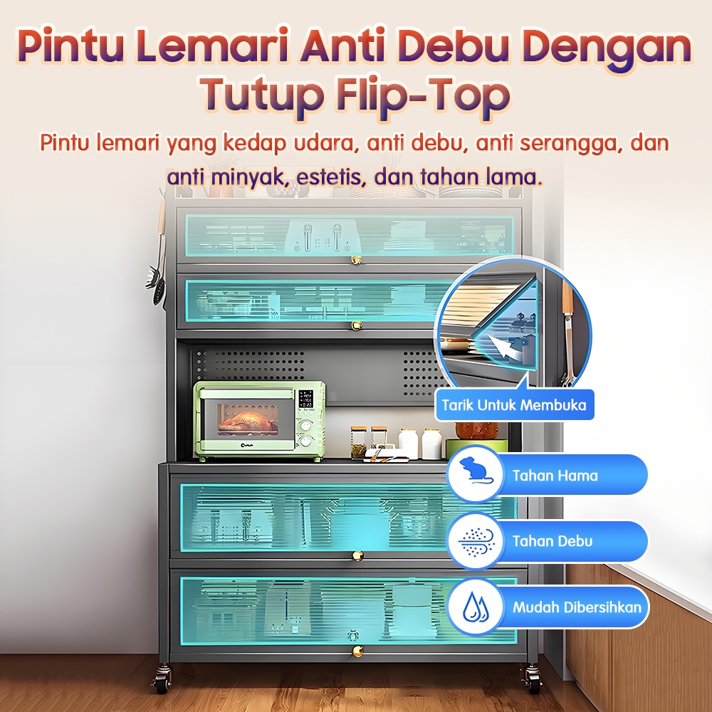 Lemari Dapur Minimalis Rak Dapur Serbaguna Rak Penyimpanan Dapur Rak Piring Oven Microwave Dengan Roda Pintu