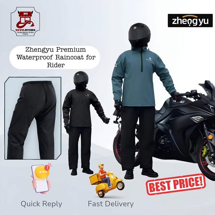 ZHENGYU PREMIUM WATERPROOF RAINCOAT JAS HUJAN MOTOR ANTI BOCOR 1 SET CELANA JAS UJAN WINDPROOF 8962 POLYESTER PONGEE REFLEKTIF CE-CERTIFIED - BLACK, M