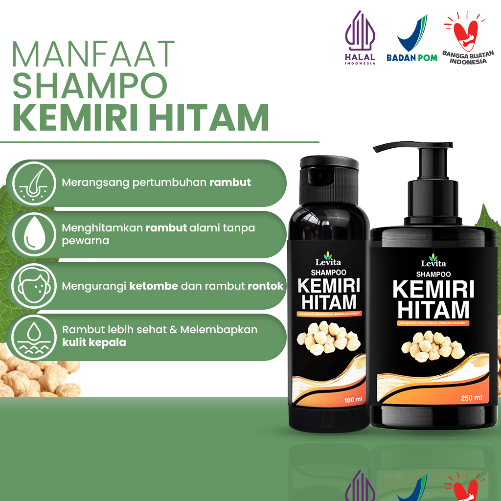 Levita Shampoo Kemiri Hitam - Penumbuh Rambut Alami, Hitamkan Uban, Atasi Rontok & Ketombe
