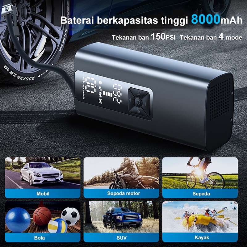 Amazefan 8000mAh pompa angin mobil inflator pompa ban mobil elektrik pompa mobil portabel Car Air Pump ban motor aksesor