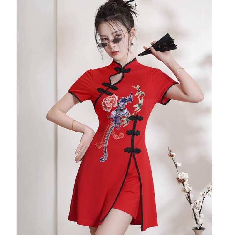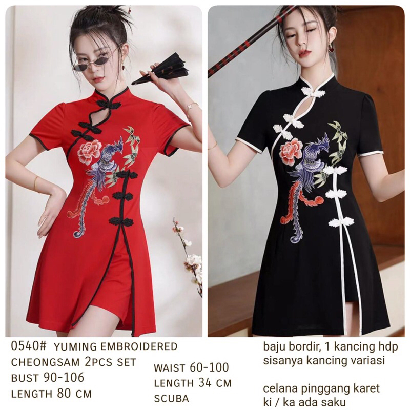 TM 0540 Setelan CNY Yuming embroidered cheongsam 2pcs set import