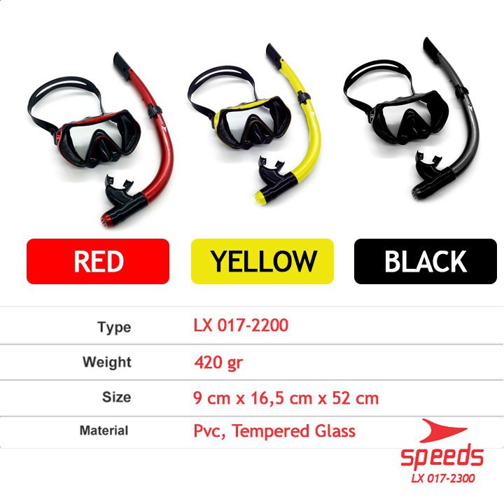 Kacamata Renang Snorkeling PVC SPEEDS Untuk Selam/Snorkel Diving 017-2300 3PC=1.3KG