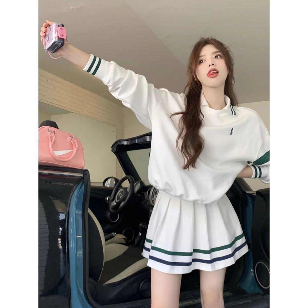 Aroana Lucky Sports Shirt Polo Shirt Women's Long Sleeve Jacket Vintage American American Long Sleeve Girls 'Top White C