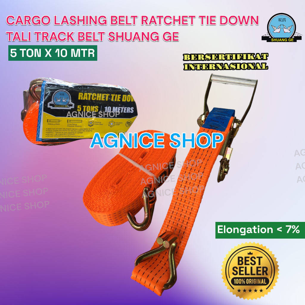 Cargo Lashing Belt 5 Ton 10 Meter Rachet Tie Down Trackbelt Tali Ikat Sabuk Truk(GOSAVE)