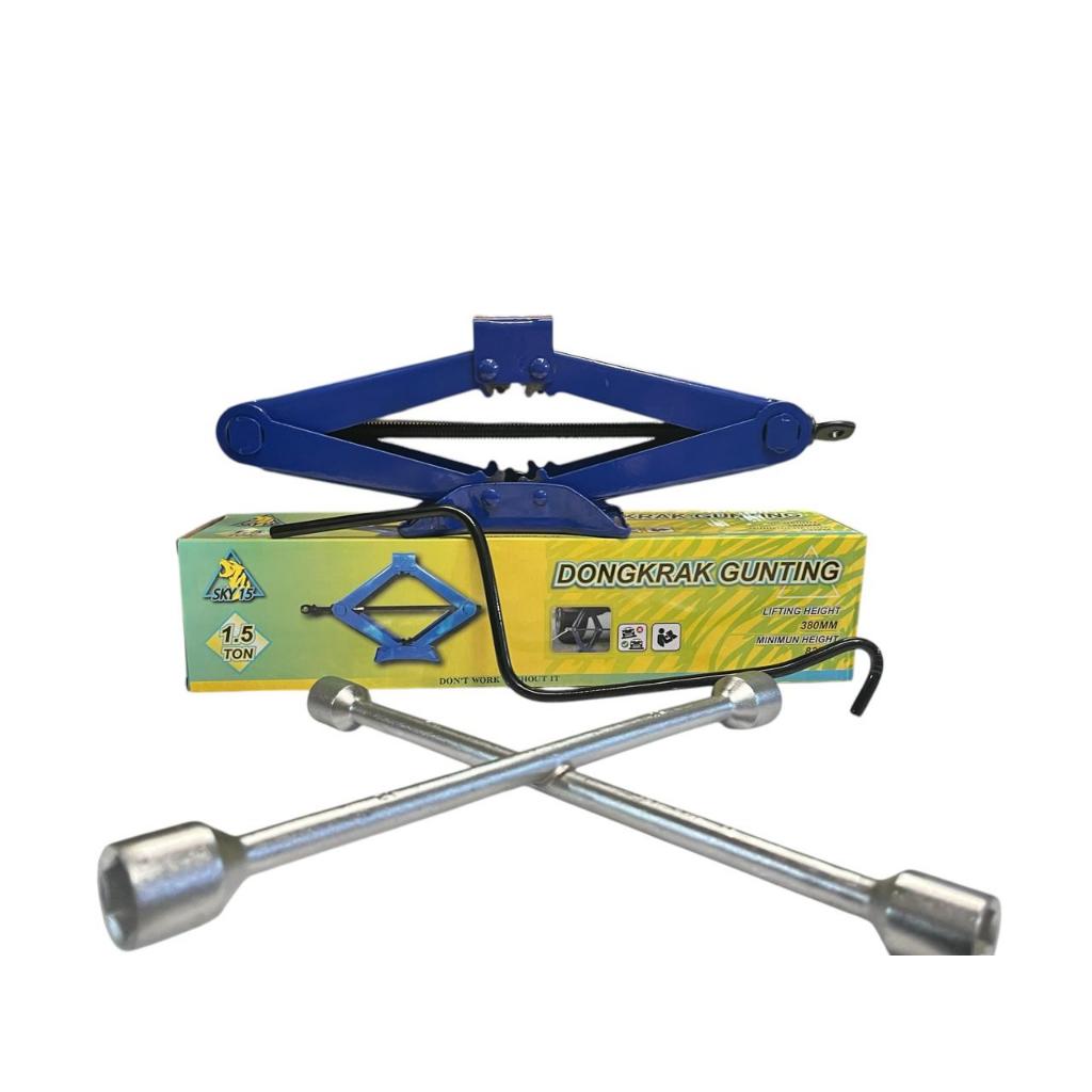 PAKET HEMAT DONGKRAK MOBIL JEMBATAN 1,5 TON WARNA RANDOM PLUS KUNCI RODA PALANG 17 X 19 X 21 X 23 MM