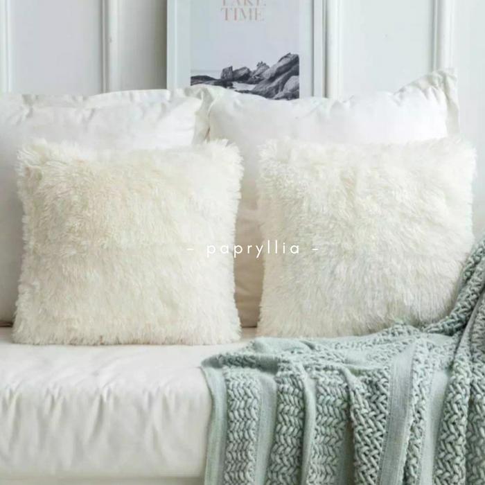 SARUNG BANTAL BULU / SARUNG SOFA TAMU UKURAN 40X40 CM - PUTIH