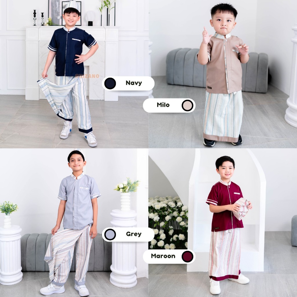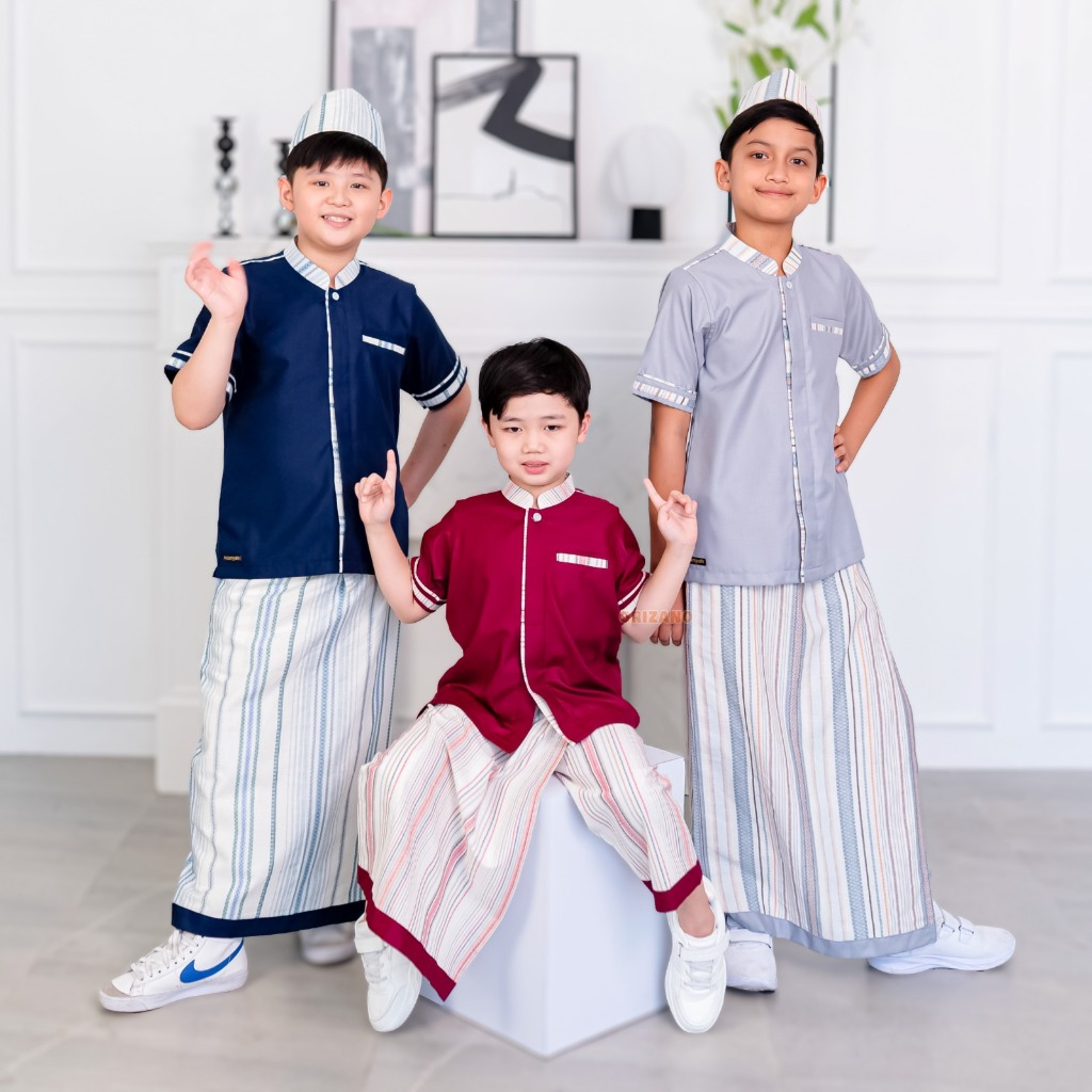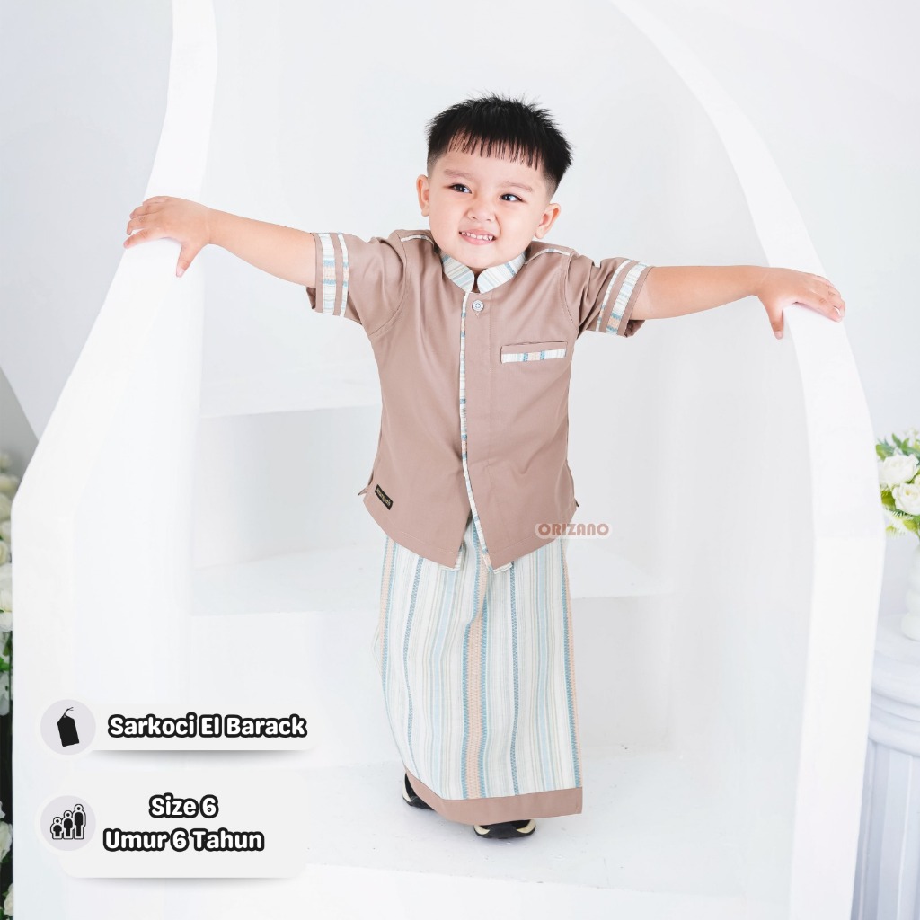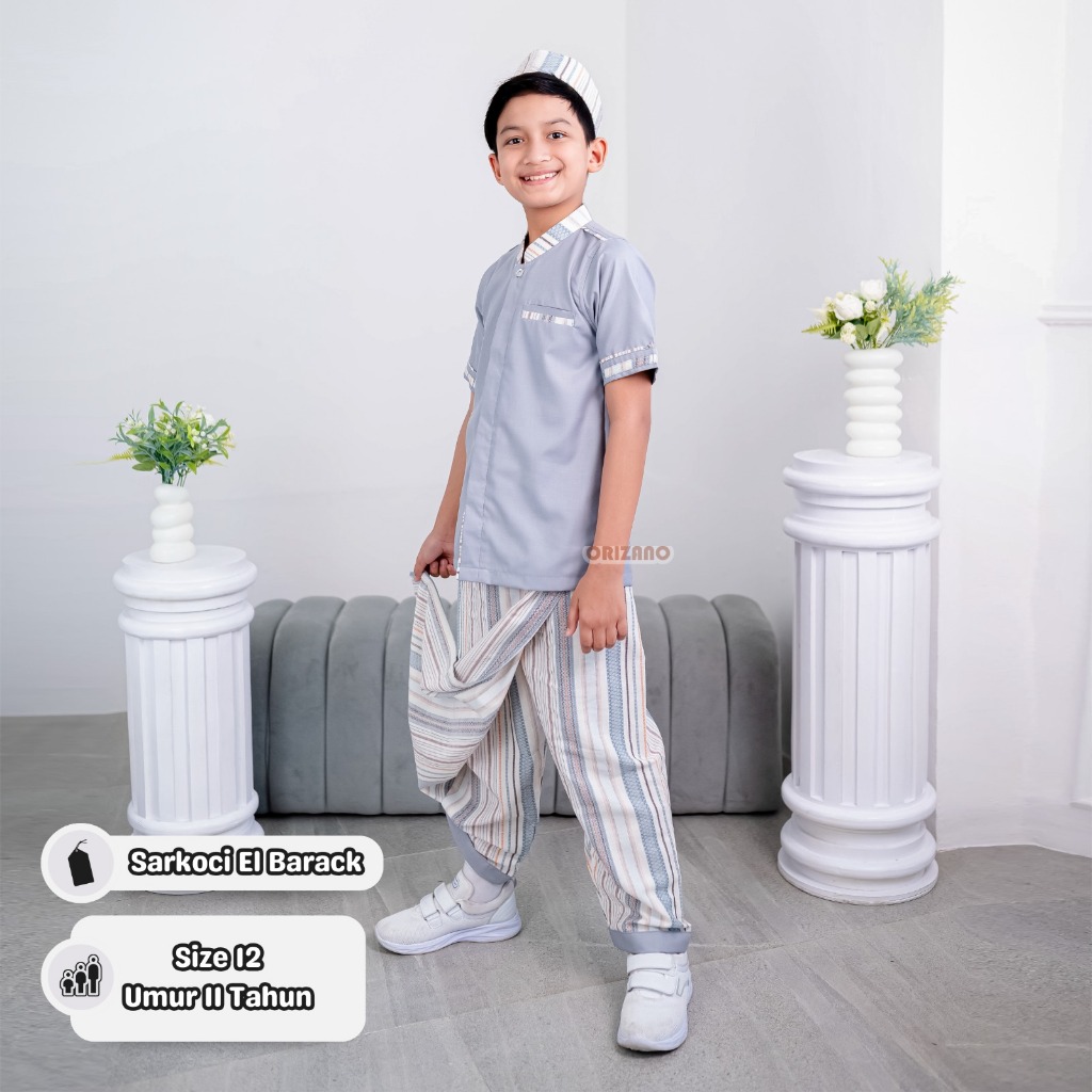 ORIZANO SARKOCI EL BARACK - Set Baju Koko Anak Laki-laki Sarung Celana Salur Premium