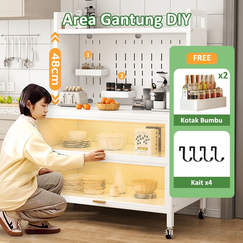 Rak Dapur Serbaguna Kabinet Lemari Piring Dapur Kitchen Storage Rack Microwave Oven Self Cabinet Rack With Doors&Wheels Microwave Oven Rack