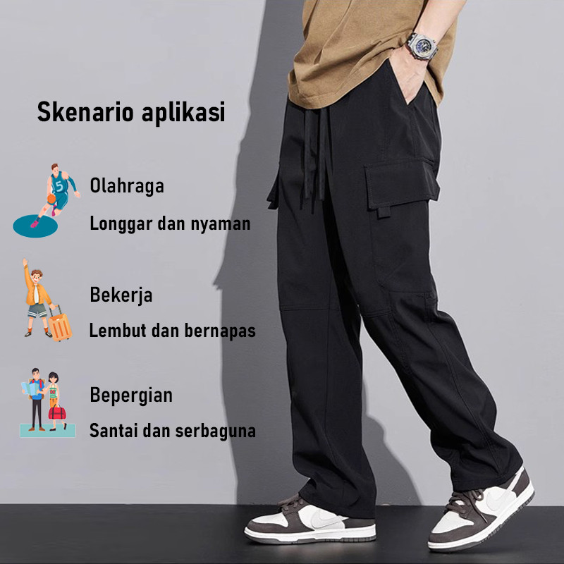 Drs. Store Celana cargo panjang pria kulot katun twill dewasa baggy pants Korean style causal Celana kargo