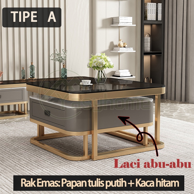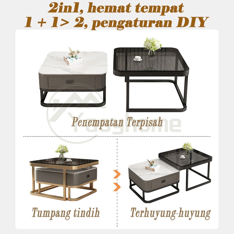 2in1Meja Ruang Tamu Marmer Meja Ruang Tamu MejaTamuberbentuk persegi 60+70cm Kombinasi Gratis Meja Kopi Meja Ruang Tamu Meja Tamu Marmer