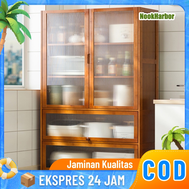 Kabinet Dapur Bambu Transparan - Tahan Lembab & Anti Debu, Desain Minimalis Modern