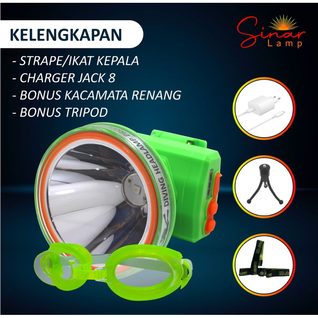 Jinlong Senter Kelapa Selam JL132K 250W 9000mAh ABS Premium Adaptor Jack 8 Cahaya kuning Tahan 20jam