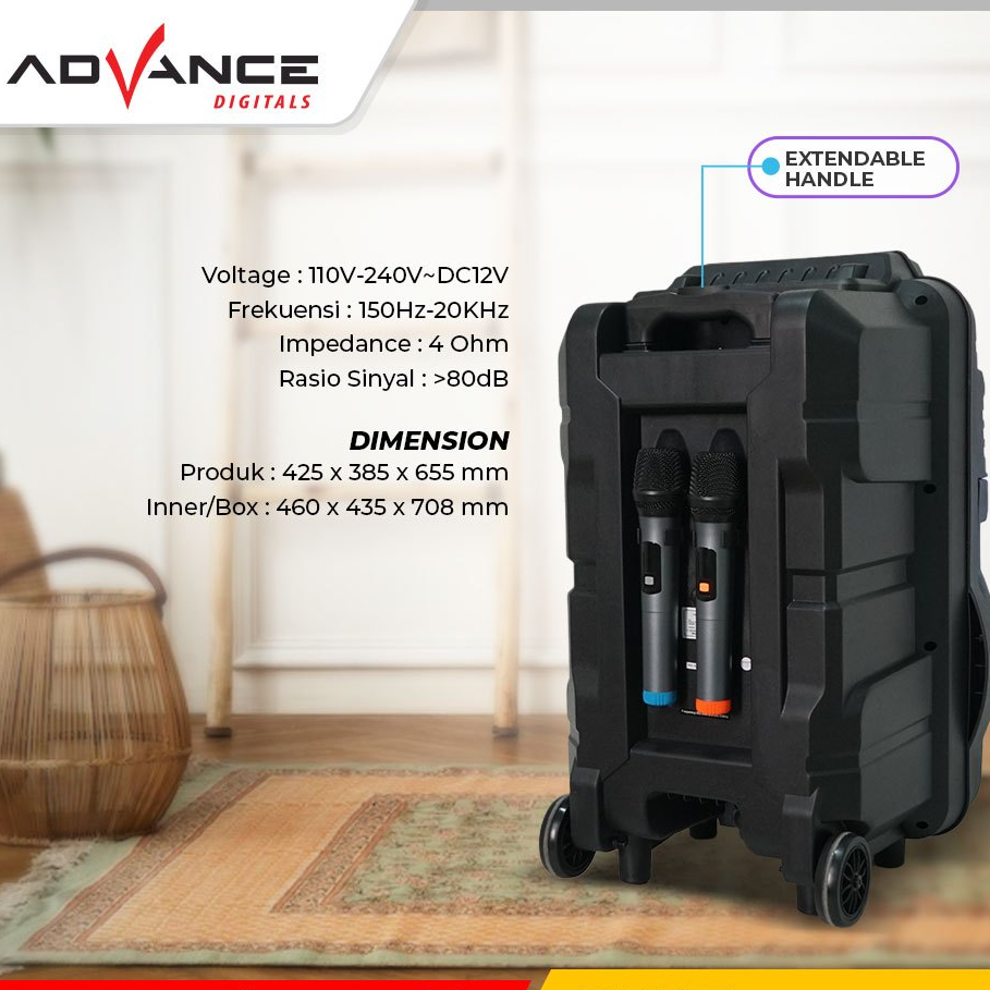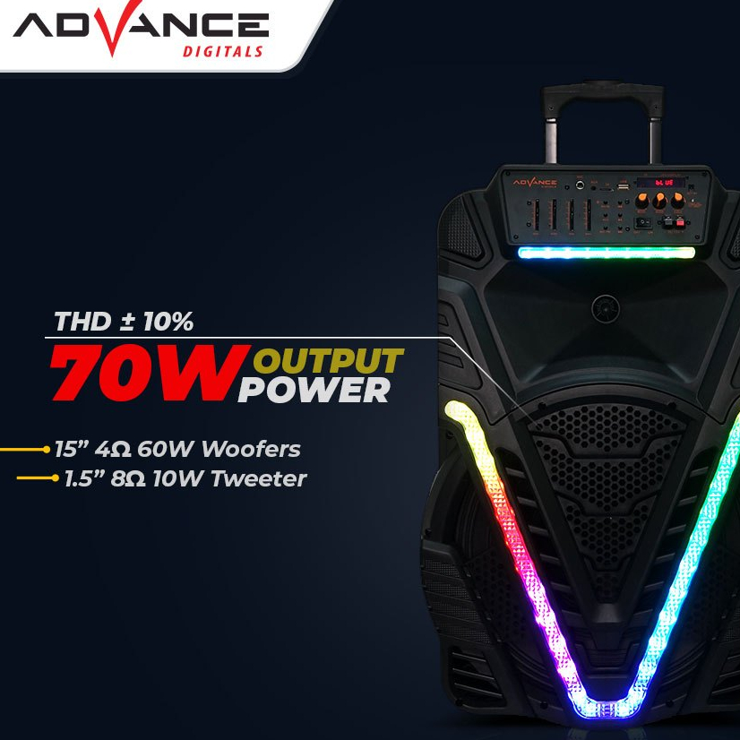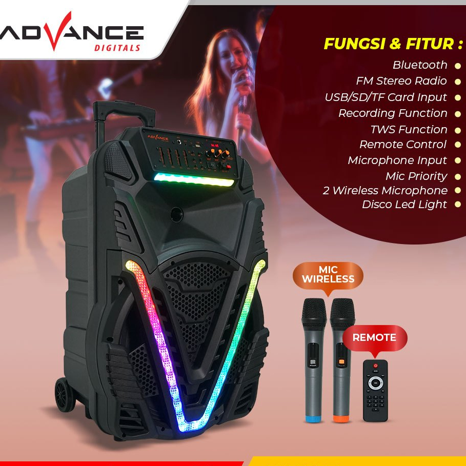 Advance Speaker Bluetooth karaoke portable+2xmic Wireless TWS 15inch 1207/1507