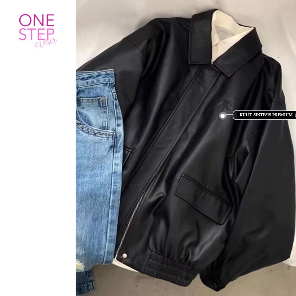 Outer Jaket Kulit Sintesis Premium Oversize Jumbo Besar Resleting Bomber T1-006-ZJ516