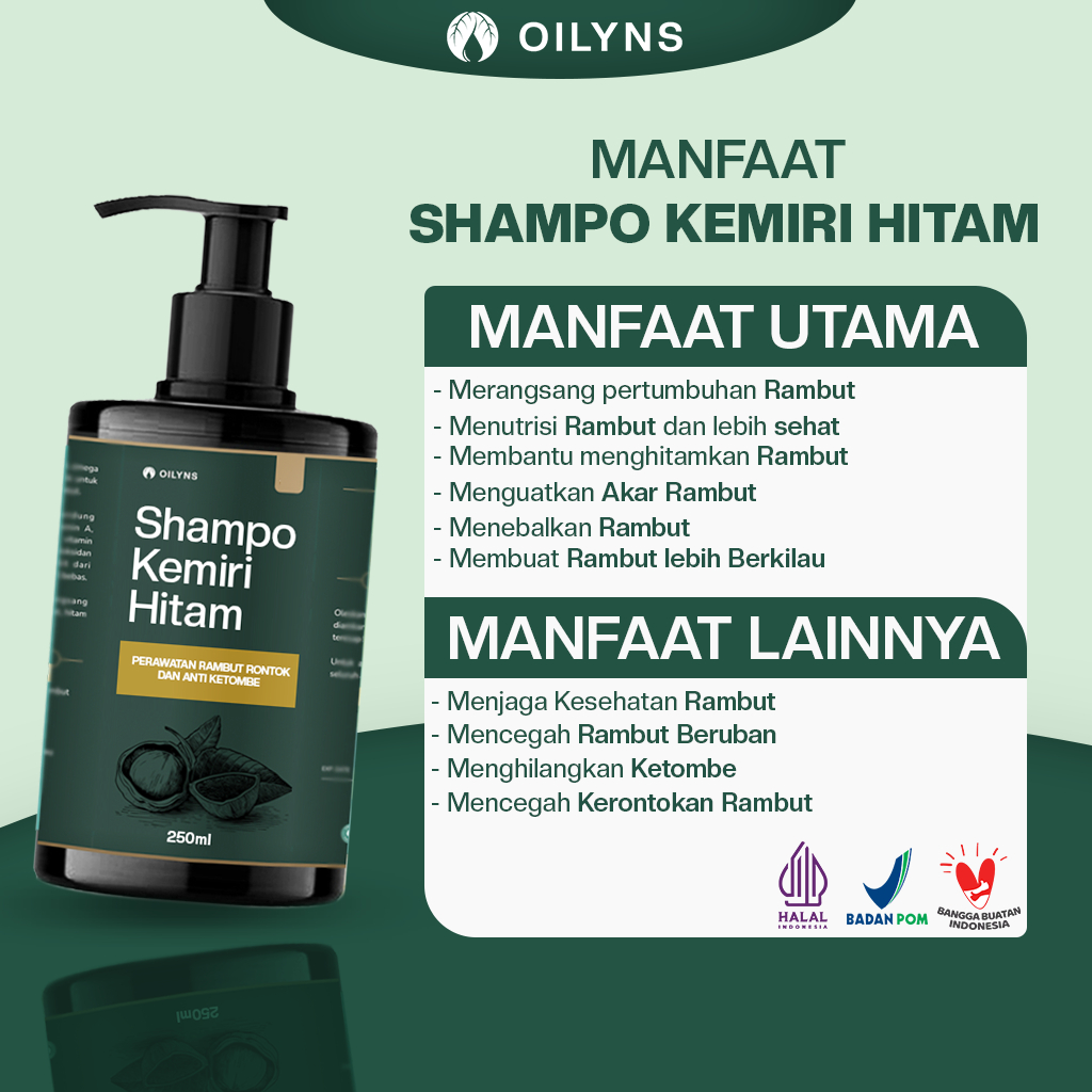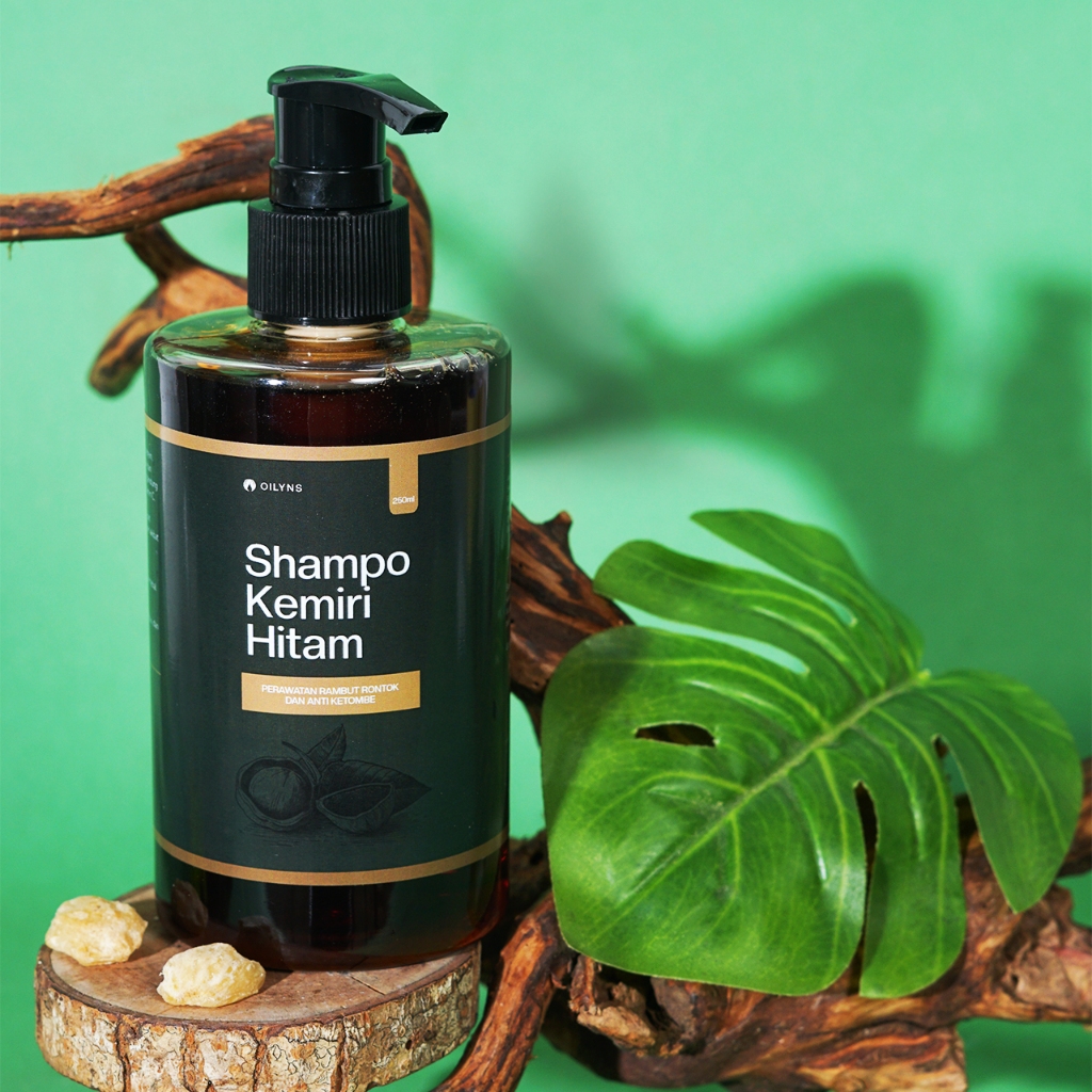 Oilyns Shampo Kemiri Hitam 250ml BPOM Anti Rontok Penumbuh Rambut Menebalkan Menghitamkan Uban