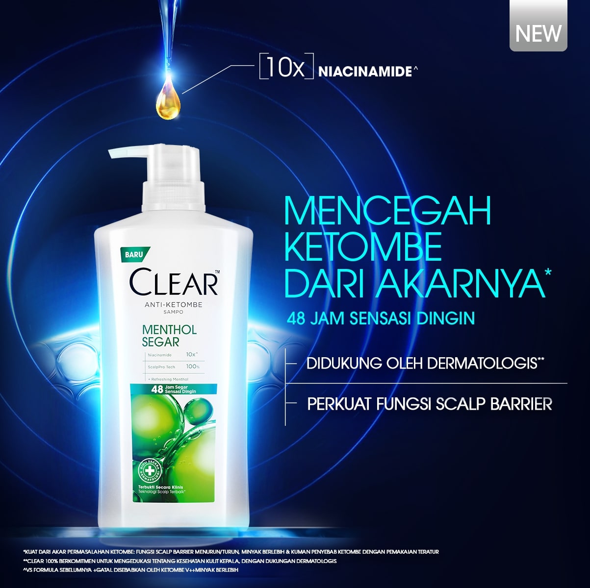 CLEAR Shampoo Anti Ketombe Menthol Segar, 48 Jam Segar Sensasi Dingin dengan 10x Super Vitamin - 850mL