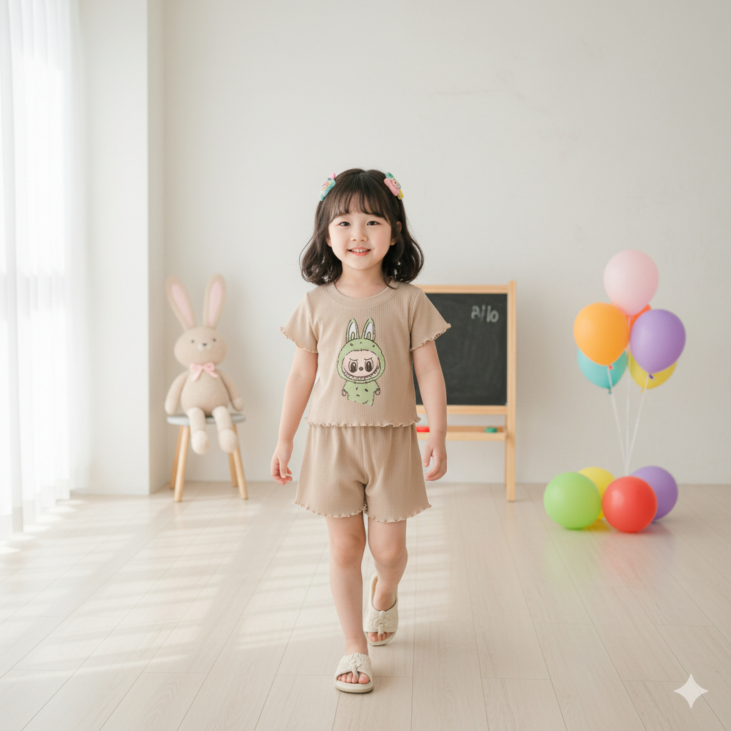 SET ANAK RABELLIA DTF MOTIF LABUBUBU / SETELAN ANAK PEREMPUAN RANY RIB PREMIUM
