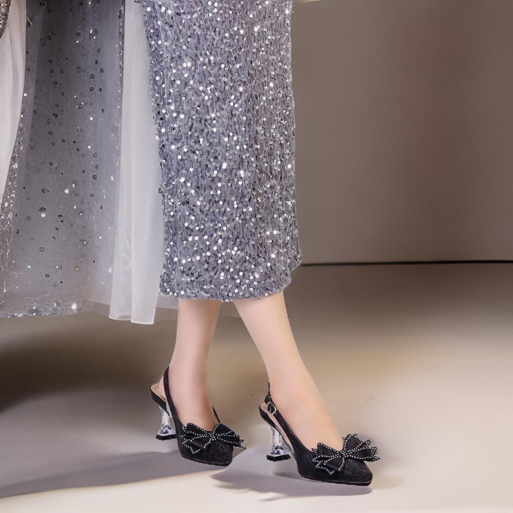 Herdian OZ 06 Sepatu Heels Wanita Hak Kaca 7 Cm Tali Gesper Belakang Karet Shoes High