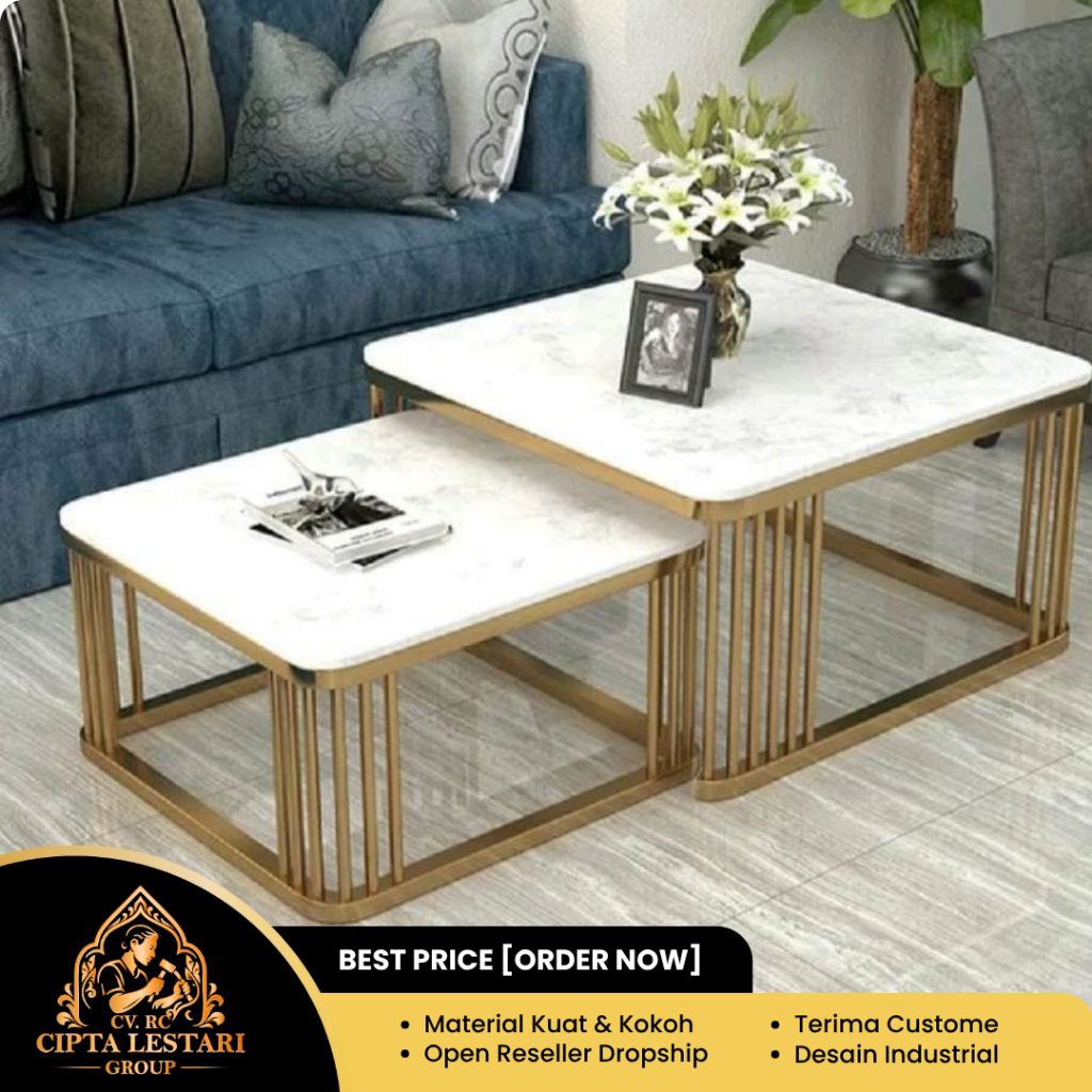 Meja Tamu |2 Set Meja Tamu | Motif Marmer