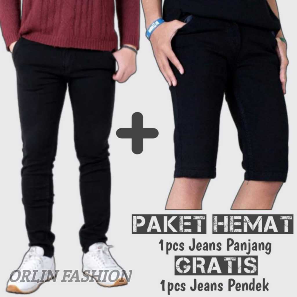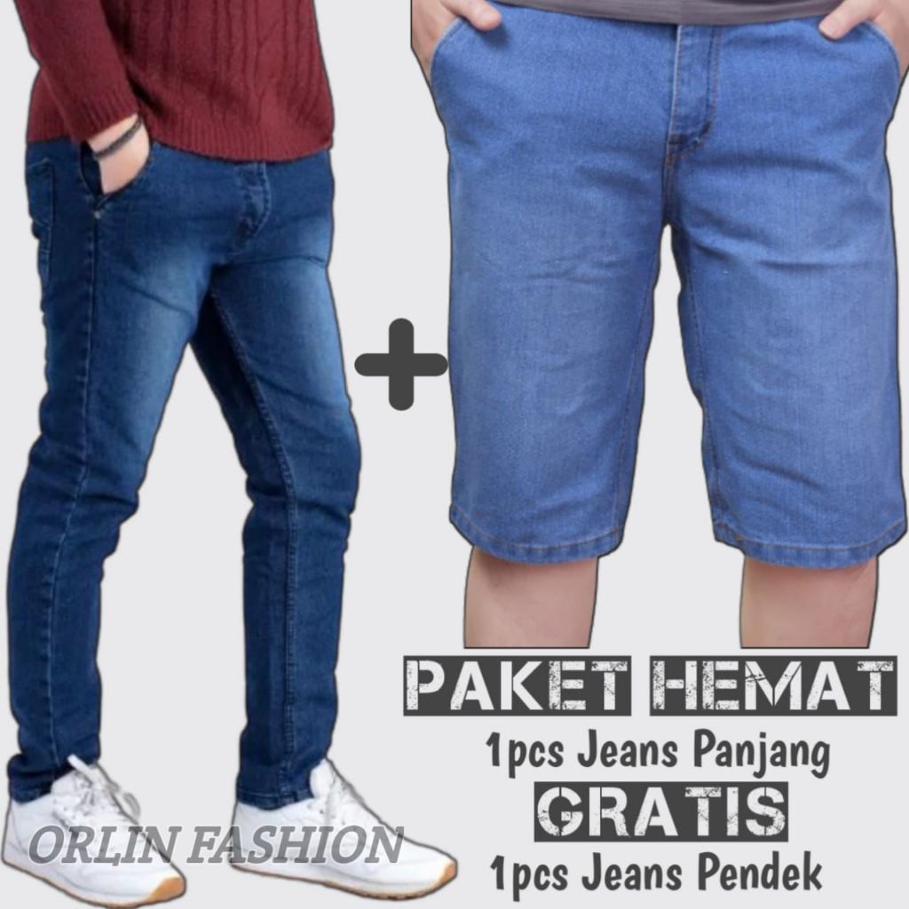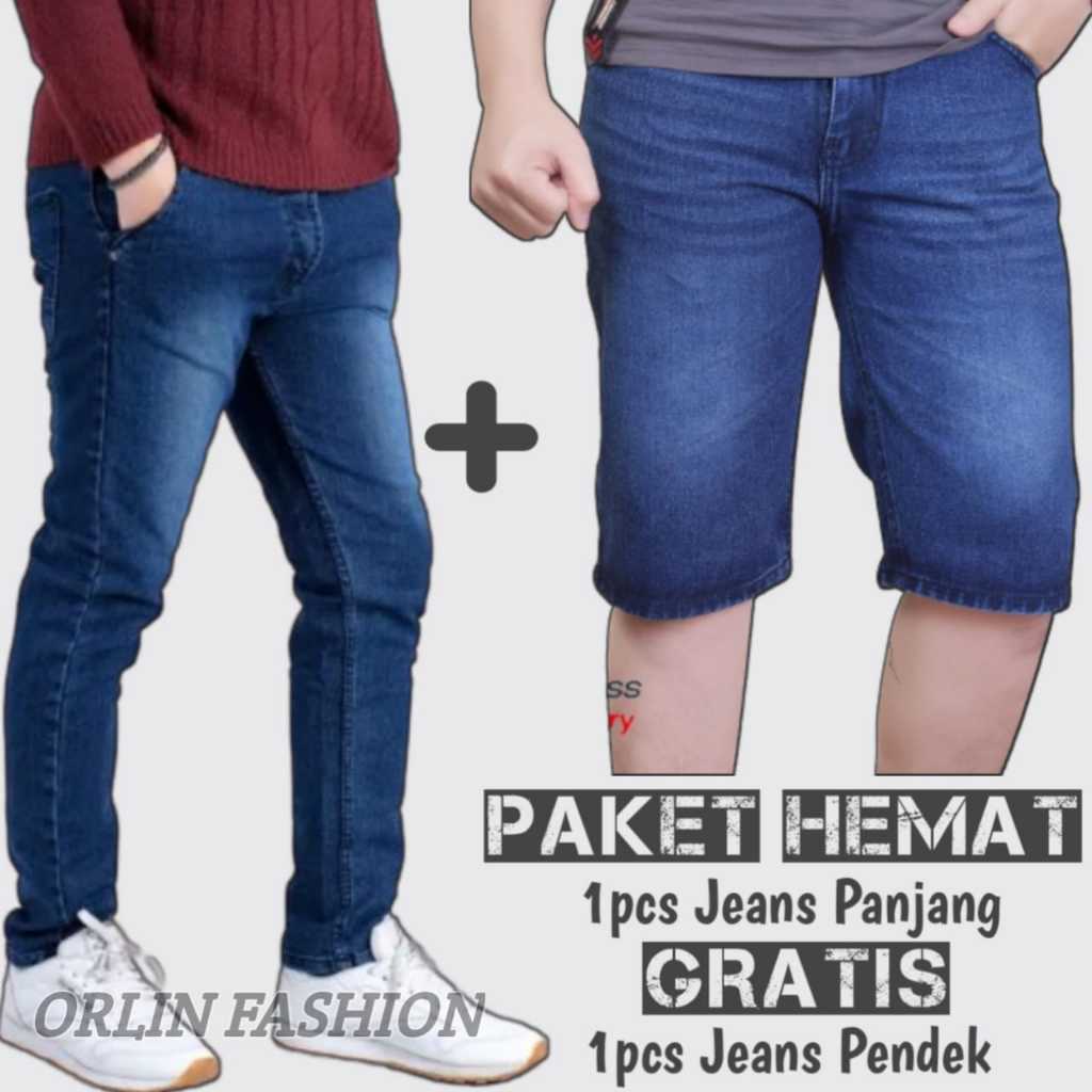 Buy One Get One Beli 1 Celana Jeans Panjang Slimfit Pria Gratis 1 Celana Jeans Pendek Pria Kekinian