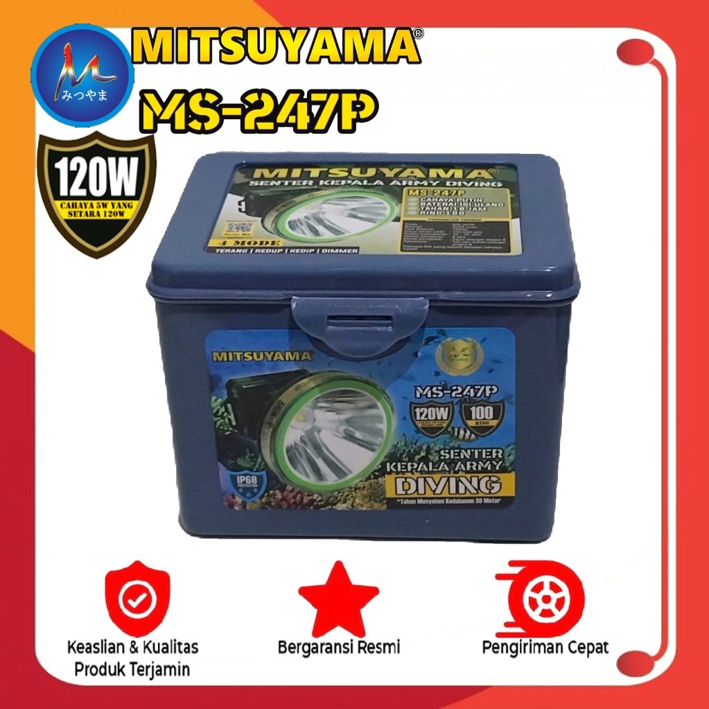 Senter Kepala Head Lamp Army Diving Selam Headlamp Diving 4 Mode Mitsuyama MS-247P Cahaya Putih