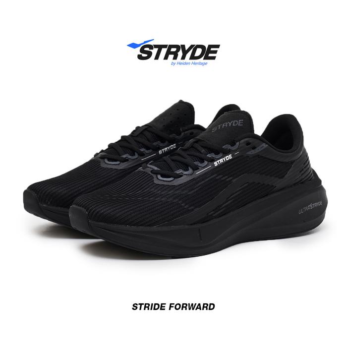 HEIDEN HERITAGE [HRTG] - ULTRA STRYDE - FULL BLACK - SEPATU SPORT RUNNING SEKOLAH CASUAL STYLE LARI PRIA DEWASA - STRYDE