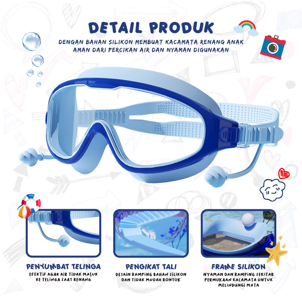 KIGO Kacamata Renang Anak Fashionable Bahan Silikon Anti Fog Dan Anti Kebocoran Sytle Kids Terbaru CF030
