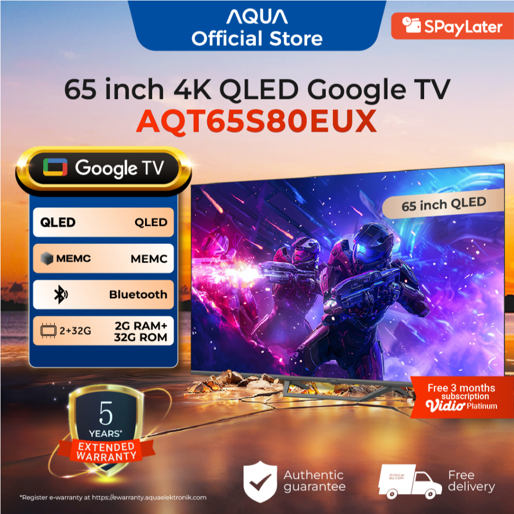 AQUA Elektronik TV AQT65S80EUX - 4K QLED - Google TV - ALLM - Google Play/Netflix/Youtube/Disney+Hotstar-RAM 2GB ROM 32G