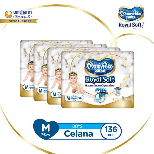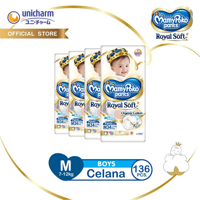 MamyPoko Pants Royal Soft - M 34 - Boys - Popok Celana - Karton isi 4