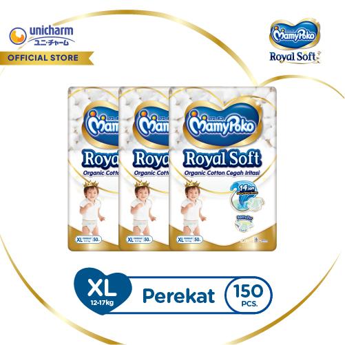 MamyPoko Royal Soft Organic Cotton - XL 50 - Popok Tape - 3 Packs