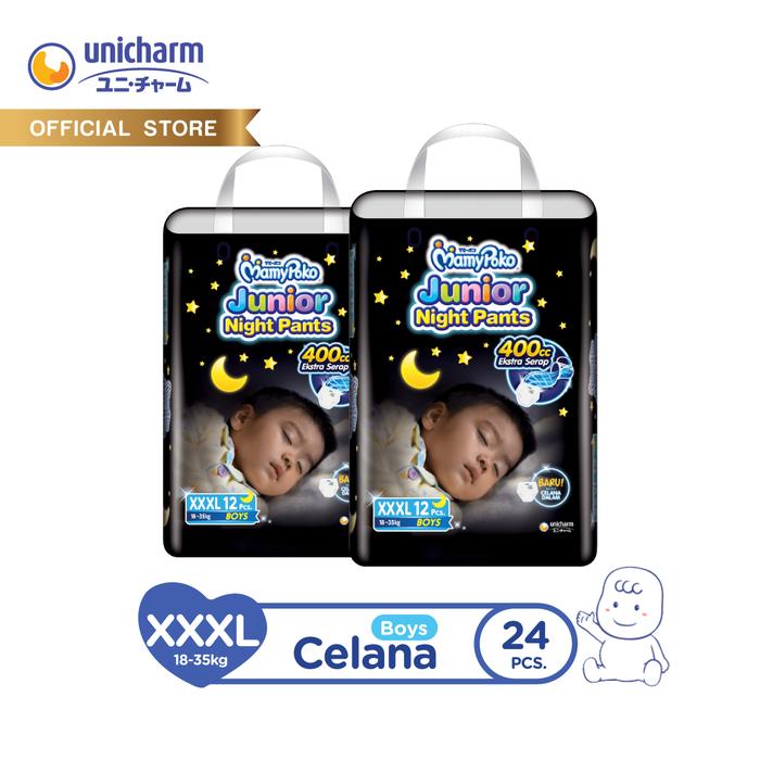 MamyPoko Junior Night Pants - XXXL 12 - Boys - Popok Celana - 2 Packs Diapers Bayi