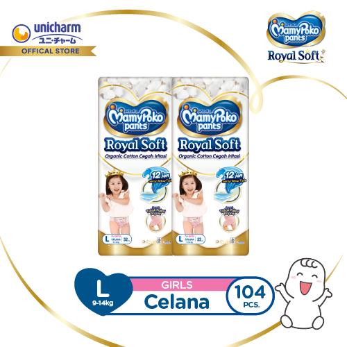 MamyPoko Pants Royal Soft - L 52 - Girls - Popok Celana - 2 Packs Diapers Bayi Cotton