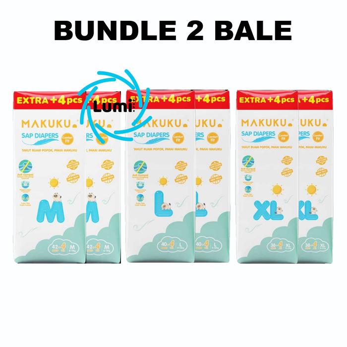 BUNDLE 2 BALL MAKUKU SAP DIAPERS COMFORT FIT PANTS M42+4 L40+4 XL38+4