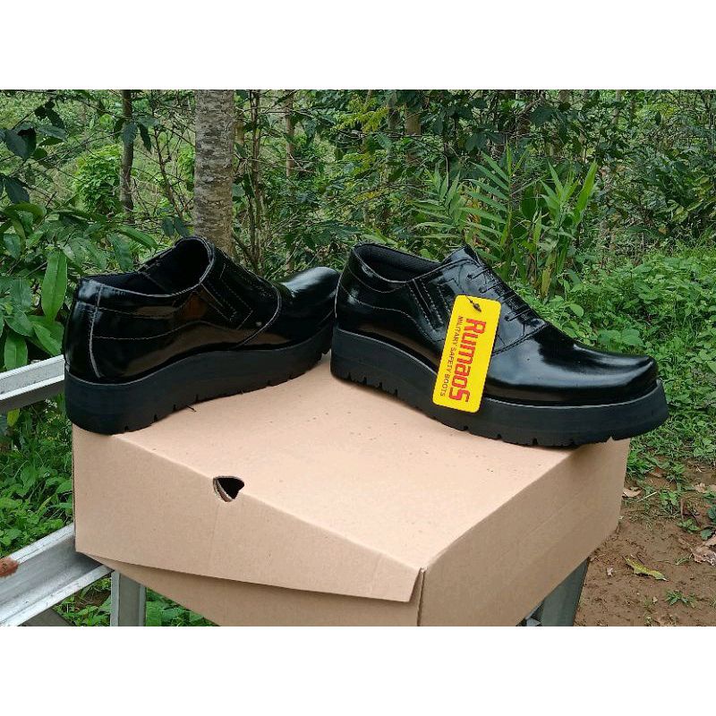 Terbaru-sepatu dinas PDH pendek outsole tebal 4-5cm/KANTORAN kulit sapi asli hitam kilap