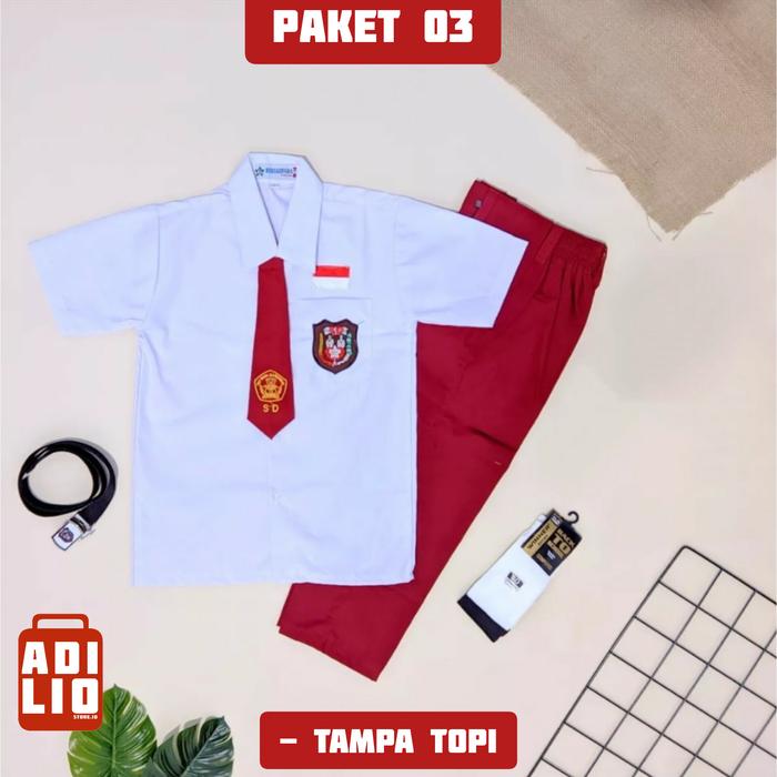SETELAN SUPER LENGKAP SERAGAM SEKOLAH BAJU SD PENDEK CELANA MERAH PANJANG ANAK COWOK - PAKET-01, KELAS1