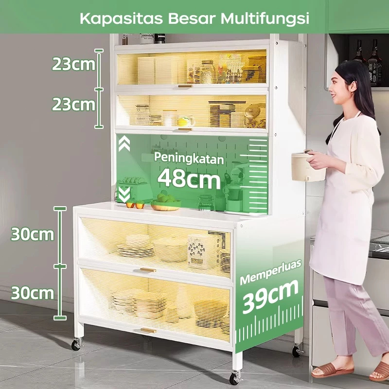 Rak Dapur Multifungsi Berdiri dengan Pintu - Rak Microwave, Lemari Penyimpanan Piring, Kabinet Dapur Kokoh untuk Perlengkapan Makan