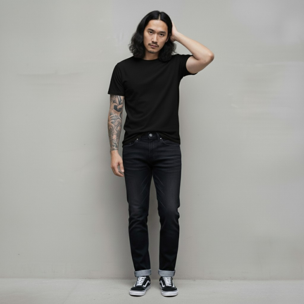 RAKERBE Paket Celana Jeans Denim Blackjazz 13.5oz Slimfit + Kaos Polos Cotton 30s