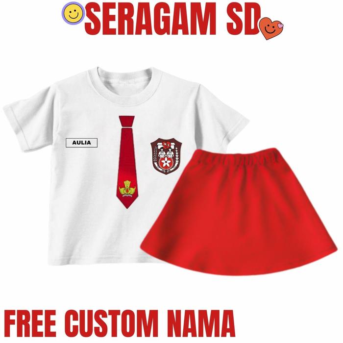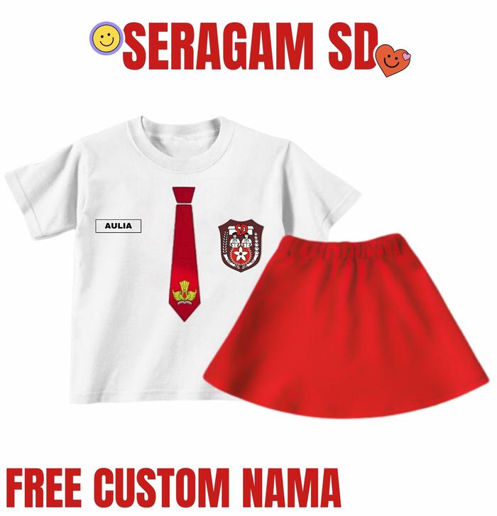 SETELAN ROK SERAGAM SD, SMP, SMA FREE NAMA UNTUK BAYI DAN ANAK PEREMPUAN KATUN COMBED 30S - SD, BAYI 1 6-12 BLN