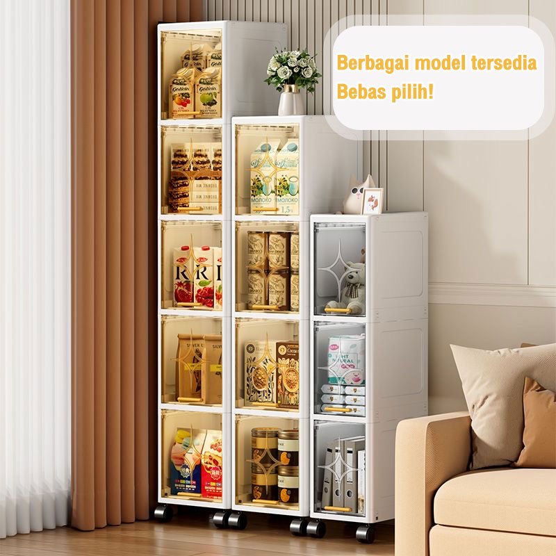 Lemari Plastik Estetik Lemari Plastik Dapur Susun Multifungsi Lemari Celah Transparan Dengan Roda