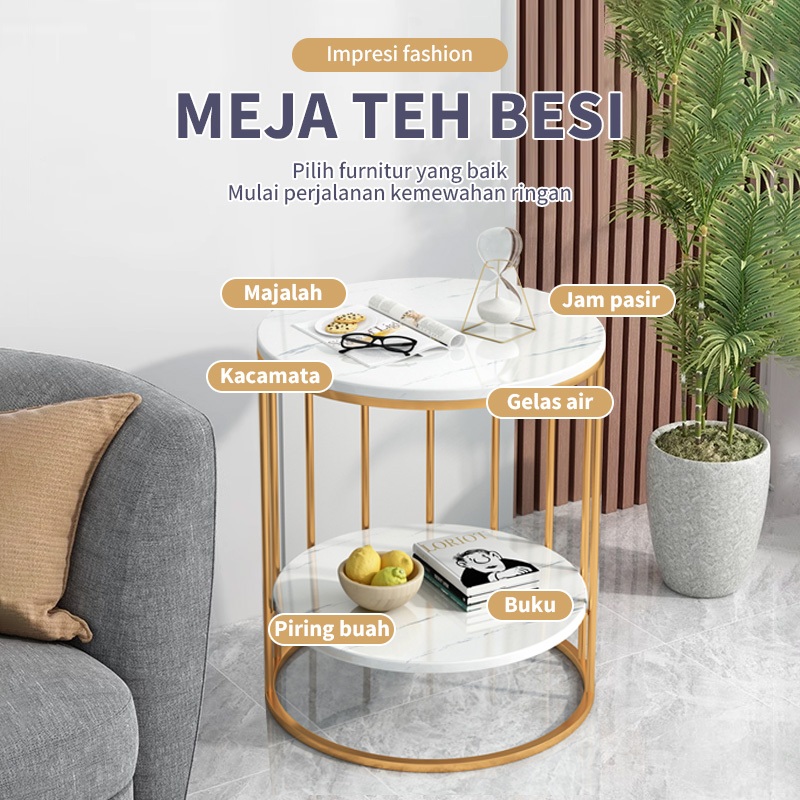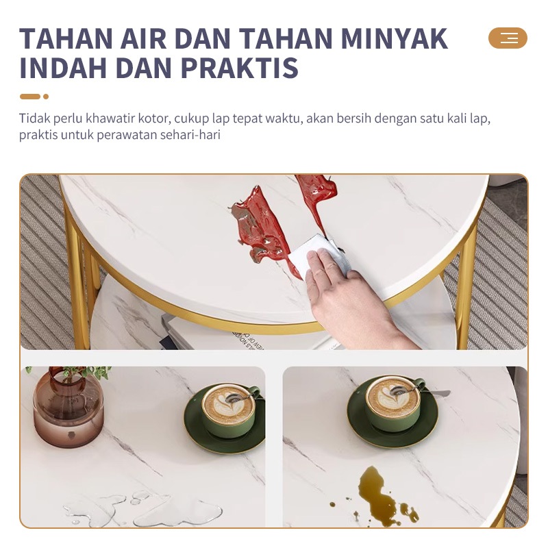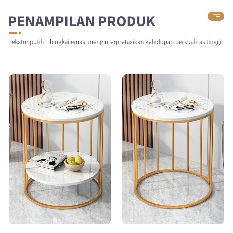 Meja Sudut Meja Marmer Putih Meja Cafe Meja Ruang Tamu Minimalis Lapisan Ganda/Tunggal Cocok Untuk Ruang Tamu Atau Kamar Tidur