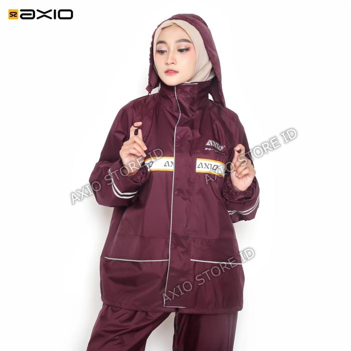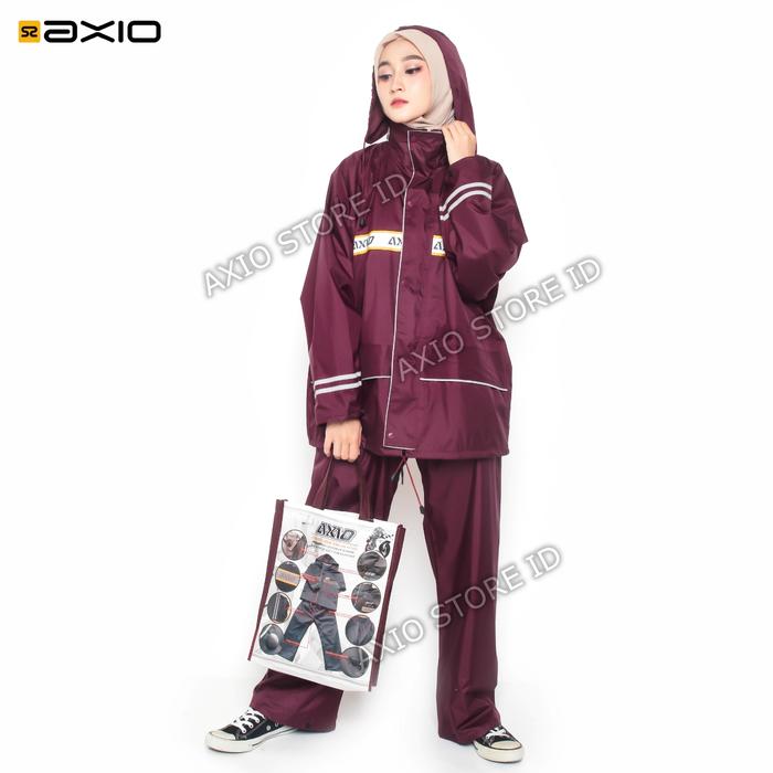 JAS HUJAN AXIO MERAH MAROON ORIGINAL BAHAN LEBIH TEBAL ANTI BOCOR WATERPROOF - MERAH MAROON, M