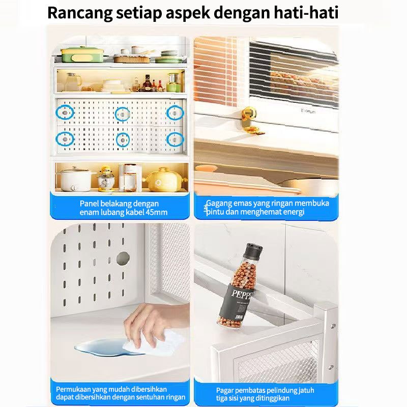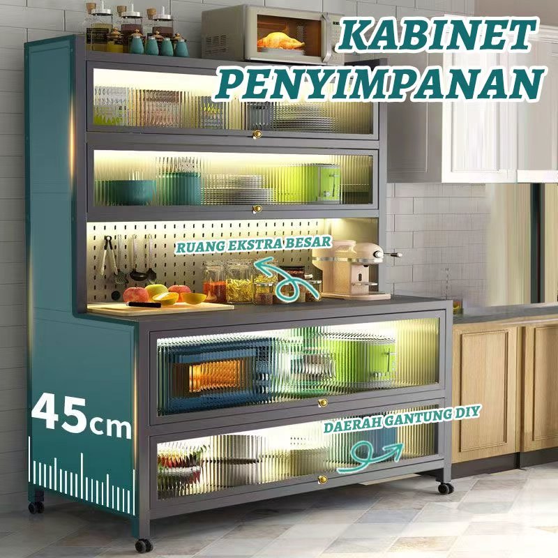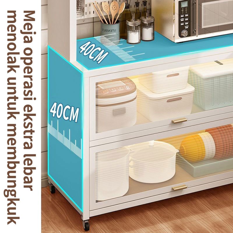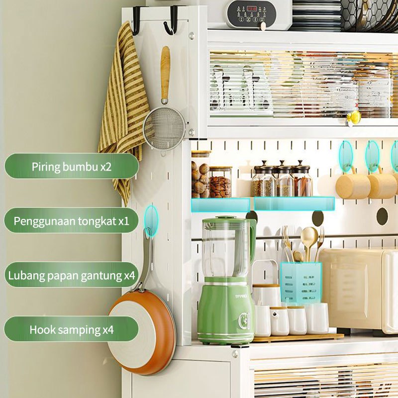 Rak Dapur Lemari Dapur Dengan Pintu Rak Penyimpanan Microwave Oven Rak Multi-Lapisan Lemari Piring Lantai Berdiri Rak
