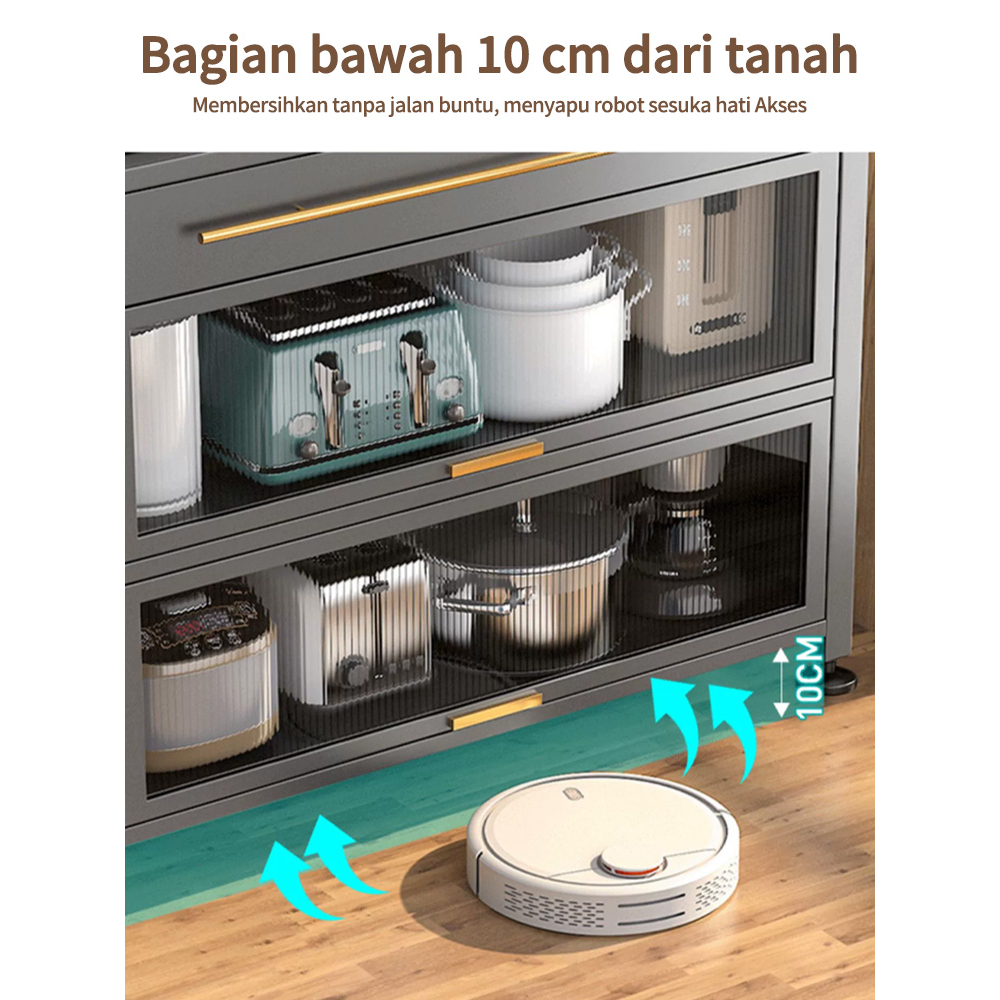 Rak Dapur Lemari Dapur Dengan Pintu Rak Penyimpanan Microwave Oven Rak Multi-Lapisan Lemari Piring Lantai Berdiri Rak