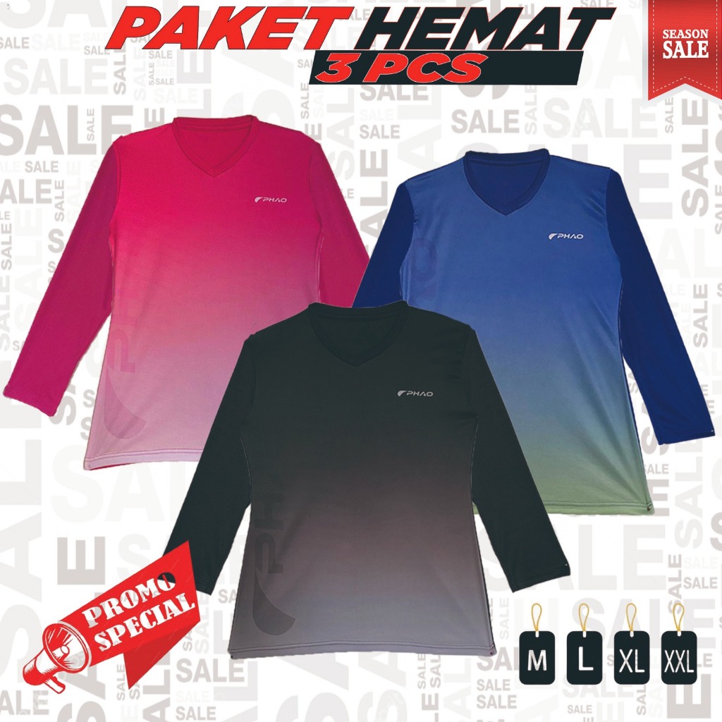 3PCS Kaos senam wanita Lengan panjang / kaos gym / kaos lari / kaos olahraga printing wanita