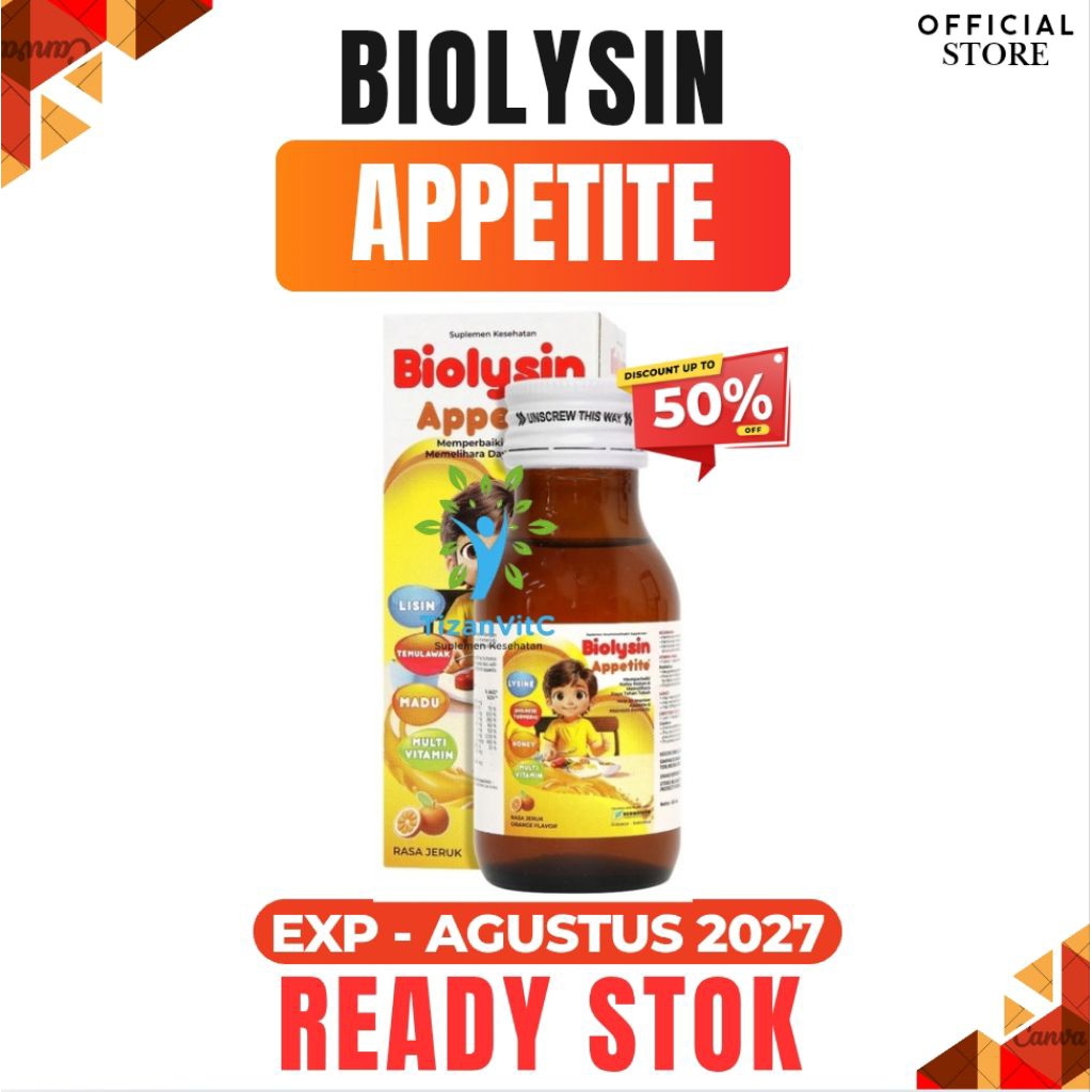 Biolysin+Lysine Syrup Appetite 60Ml Multivitamin-Penambah Nafsu Makan Anak Anak-Rasa Jeruk
