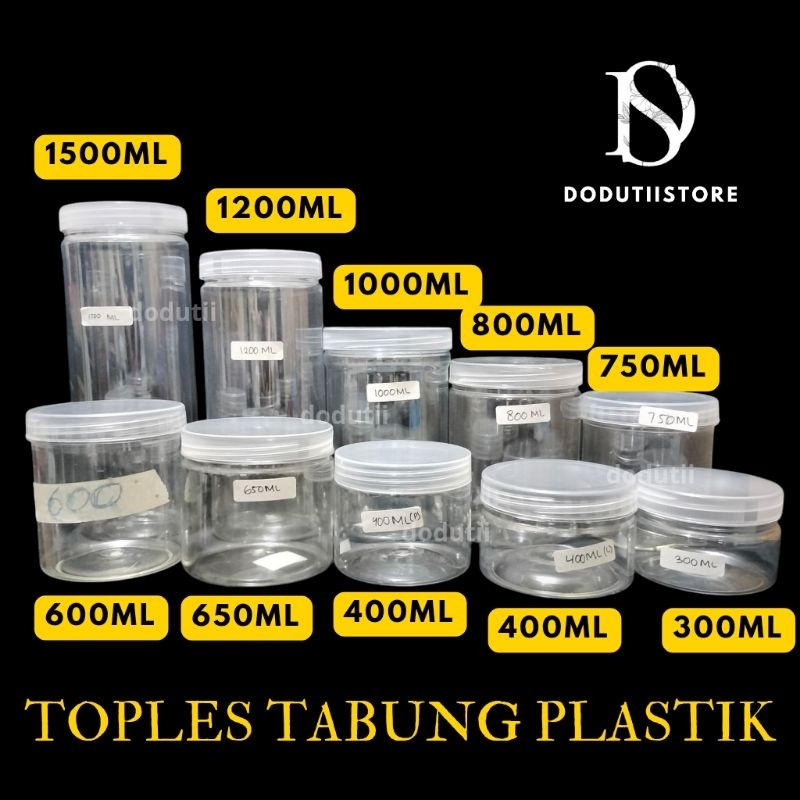 Toples Bening Plastik Jar Tabung 400ml 600ML 650ML 750ml 1000ml 1300ml 1500ML Plastik n Seal Jar Silinder Bening Pet