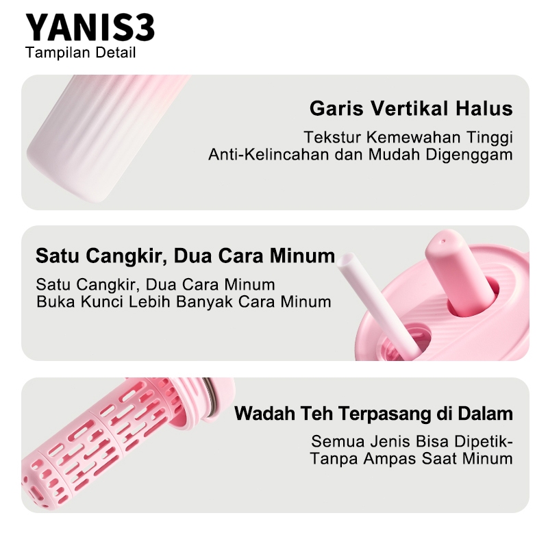 YANIS3 Tumbler Stainless Steel 550ml Botol Minum Tahan Panas Dingin BPA FREE Portable Anti Tumpah